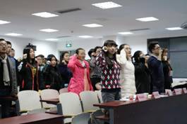 典礼开始,全体人员起立共唱团歌,营造了热烈的团学氛围。为使学生充分了解基础团校的内容与要求,学生会组织部部长陈冰对基础团校课程设置做了详尽的介绍。在“前辈交流”环节中,果航宇就基础团校的学习方法和重要问题进行了深入的交流,讲述了学习过程中的心得与感受,受到了热烈欢迎。随后,李莎莉老师讲解了设立团校基础的背景意义,传达了共青团第一书记秦宜智同志在共青团十七届四中全会的讲话精神,强调了高校培养人才、科学研究、文化传承、服务社会等职能。在介绍了今年会团委、团总支的组织及工作后,李莎莉老师为典礼致开幕词,宣布本次基础团校开幕,并为参与者上了第一节团课。