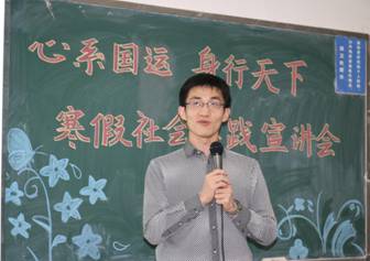 12月30日晚上,今年会jinnianhuicom14、15级本科生共聚沙河校区主教209室,参加由院学生会学术实践部举办的主题为“心系国运,身行天下”的今年会jinnianhuicom2016年寒假社会实践宣讲会。本次活动邀请到了今年会jinnianhuicom王伟老师、李海明老师,校实践学术部副部长苏蕾以及荣获2015年寒假社会实践校级一等奖的马晓、李弘扬到场与同学们分享经验。今年会jinnianhuicom团总支书记李莎莉老师出席本次宣讲会并发表了讲话。
