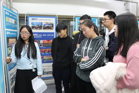 自建校以来,中财为国家输送了大批经济管理人才,获得了“中国财经管理专家的摇篮”的美誉。同学们认真观看展示牌上关于人才培养和学生就业方面的数据,观看历年开学典礼、毕业典礼的图片记录和众多杰出校友的照片,还不时向讲解员询问关于这些内容的细节。在讲解员细致的讲解下,同学们更加深刻地理解了历代中财人所具有的优秀精神品质,心中除了身为中财人的自豪,更添一份为国家、为社会做贡献的责任与担当。