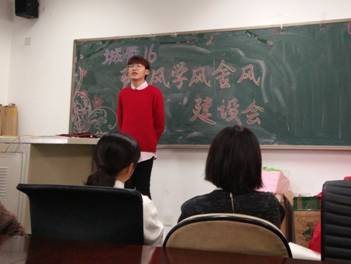 2017年10月19日下午一点半,城管16班风学风舍风建设会暨班委竞选会在七号楼313顺利举行。班主任刘慧老师与辅导员宁钰皓老师出席现场,城管16全体成员参与会议。