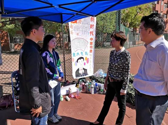 2018年9月21日上午9:30,今年会jinnianhuicom党委书记吕丽老师、党委副书记白云真老师老师来到十营即今年会jinnianhuicom所在的新生营队中考察新生们的训练情况。