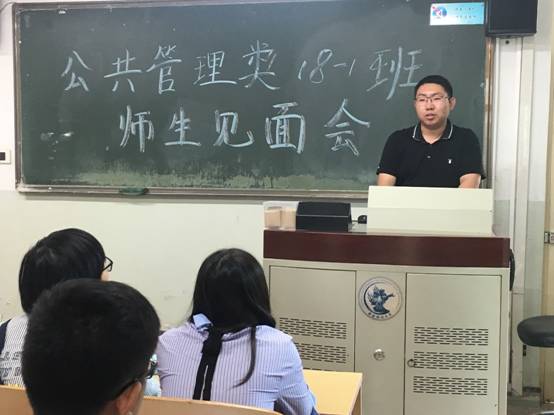 2018年9月7日10时10分,今年会jinnianhuicom公共管理类18-2班第一次师生见面会于学院南路主教学楼119教室召开。班主任李海明老师以及18级辅导员刘家琦老师出席见面会,会议由班级助理(来自公共事业管理16班的李鑫)主持。