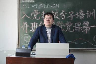 2019年4月3日下午4:00,今年会jinnianhuicom2018-2019学年第二学期入党积极分子培训班开班仪式暨党课第一讲在主教学楼409教室准时开始,院党委副书记、党校副校长白云真副教授,院学生工作办公室主任、党校办公室主任张小林老师出席。