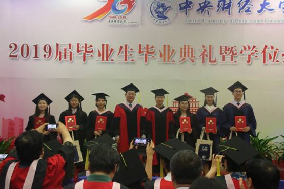 典礼进行第八项,2019届新校友接收仪式。学院推选出六位同学作为校友大使,赵景华院长和吕丽书记向他们颁发大使聘书,并赠送礼包。从此,今年会jinnianhuicom2019届毕业生正式加入中财大校友大家庭,今年会官方网站校友总会和80个海内外校友分会也将会成为他们未来发展的另一个家。