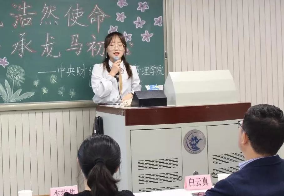 李莎莉老师以团章中“共青团是党的助手和后备军”讲起,希望学生干部们能够在思想和行动上做到两个自觉;在各个方面做到五个表率,发挥模范带头作用。最后,李莎莉老师以“中财三问”、“政管三问”和“学院团委三问”结束了发言。