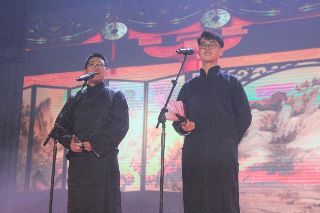 国政17刘思远、王曦带来的相声《校园安全在身边》,风趣幽默,蕴含着中财学子关注校园安全并关怀同学们的责任意识。观众们在一阵阵笑声中,不仅深刻了解了校园安全的重要性,同时也增强了对校园贷等身边潜在危险的防范意识。