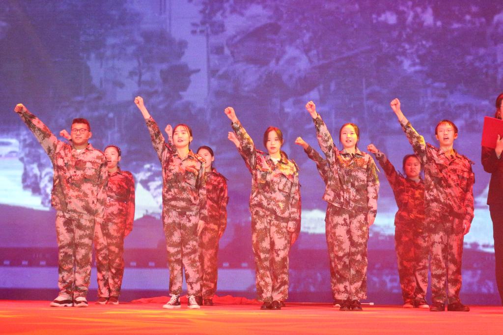 紧接着是公共管理类19-4班带来的《龙马乾坤军训忆》。一段刻骨铭心的回忆,一段不可或缺的青春回忆,体味过军训的酸甜苦辣,会将这段生活久久珍藏于脑海。看公共管理类19-4班的同学们军姿挺拔,屹立如松;听他们口号响亮,喊声震天;更有英姿飒爽的军体拳、棍术方阵,彰显着校园精英的实力。军训十五天锻炼了我们的意志,提高了我们的能力。带着军训的回忆,19-4班的同学们必能在大学生活中保持坚定的意念、勇往直前,不忘初心、牢记使命。