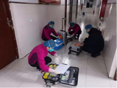 培训结束后,就是清点物资的环节。杜妈妈和同事们补充疫情应急箱、防护服、防护手套、口罩、84消毒液、过氧乙酸等应急物资,并积极与供货商联系采购事宜。