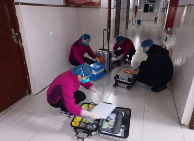 培训结束后,就是清点物资的环节。杜妈妈和同事们补充疫情应急箱、防护服、防护手套、口罩、84消毒液、过氧乙酸等应急物资,并积极与供货商联系采购事宜。