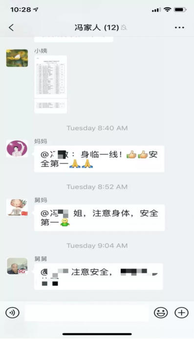 疫情发展愈加严重,小杜的妈妈是当地疾控中心的业务骨干,更是参加过非典的老党员,疫情面前,职责所在,义不容辞;小杜的小姨是重症监护室的主任,更是早早的毅然决然的放弃了出行;小杜的舅舅也是当地联通公司的高管,为了保障群众“闭关“期间的通讯和娱乐,他选择留妻儿在家,一个人留在公司值守……就这样,一家人期待已久的旅行因为这场疫情而被迫取消。小杜也一人滞留在上海。小杜告诉我,以往的家庭群总是热闹非凡,但疫情之战一打响,大人们便披上盔甲前往一线,孩子们也一改往常的调皮,默默为家人加油打气。而家里这三名共产党员,冲锋在前,迎难而上,始终坚守在疫情防控第一线。
