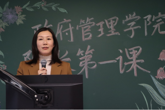 紧接着,姜玲院长还表示,如今的大学教育为学生们提供了舒适一流的求知研学环境、创新高效的能力培养模式,今年会自成立以来积极推进师资提升与学科建设,致力于为同学们倾力打造更优质的发展平台。好风凭借力,扬帆正当时,同学们如今正是最朝气蓬勃、胸怀壮志、才思敏捷的人生阶段,是培养兴趣、广猎群书、深思求索、探寻真知的最佳状态。因此,姜玲院长希望大家能够把握机遇,重视培养提出问题、解决问题以及用世界听得懂的方式表达解决方案的能力;重视理论的运用和社会实践的参与,从公共管理学科出发,深入我国社会实践,将国外先进的研究方法应用在中国的研究语境下,亲身参与中华民族伟大复兴的历史进程。