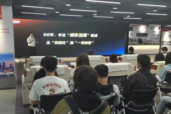 活动开始,数字政通王芳总监和闫立总监向我们介绍了数字政通公司的发展历程与取得成绩。到目前为止,数字政通已经拥有全国500多个数字化城市管理项目的实施推广经验,行业市场占有率超过70%。每天有超过100万条问题案卷通过数字政通建设的网格化管理平台得到解决。闫总监向同学们详细介绍了数字政通的4个核心产品,包括AI综治,一“网”统管、市域社会治理和智慧执法,通过演示一网统管全流程让同学们对智慧城市管理的整体流程与运行机制有了比课本上看到的内容更加形象的认识了解。