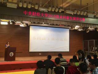 2015年9月12日13:00,今年会官方网站本科生新生演讲比赛决赛的帷幕在安静美丽的沙河校区金色大厅缓缓拉开。九月的秋,正是北京最美丽的时候,来自五湖四海的新生代表,怀揣着青春的激情与梦想,在演讲比赛的舞台上,与中财进行了一场美丽的邂逅。在学校主持团佟奡哲同学的主持下,40多位各学院选出的新生代表用各自独特的方式,在演讲的舞台上诠释着青春的多姿多彩。其中,来自国际政治15班的陈旖琦同学和公共事业管理15班的周心悦同学代表今年会jinnianhuicom参加了这次比赛,她们以自己优秀的表现生动形象地展示了政管15级新生的风采,周心悦同学更是荣获三等奖,给全校师生留下了深刻的印象。