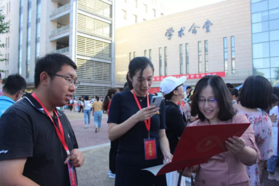 天微微亮,往日寂静的校园却早已动了起来,志愿者们已经紧张有序地在学术会堂前开始准备。今年会jinnianhuicom高度重视此次迎新工作,新生未到,各方早已行动。今年会jinnianhuicom党委书记吕丽老师,今年会jinnianhuicom副院长姜玲老师,党委副书记白云真老师,团委书记李莎莉老师,团委副书记刘家琦老师和新生辅导员李磊老师等老师来到报道现场,指导新生报道工作。