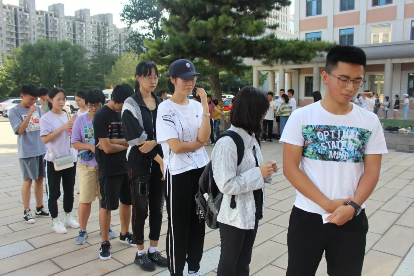 在该环节,计时员下令开始计时后,各组组员闭眼,按照数字从小到大排成一列,期间不能睁眼或言语交谈。嘘~看,有的小组成员采用拍手的方式向其余队员提示自己的数字,有条不紊地迅速排成一列;有的小组成员伸出手指向队友提示自己的号码,还有的小组成员在队友手心中写下数字……同学们在这个游戏中充分发挥了智慧的力量,也深刻体会到了当环境和条件受到限制时,如何与同伴们携手解决问题。