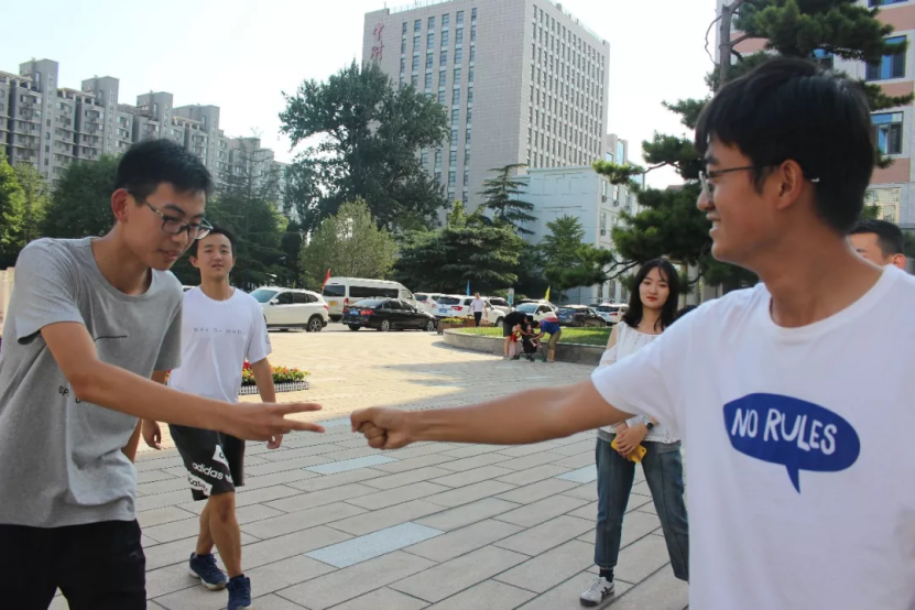 10个小组的成员分别在组长的带领下集合,并向组内成员做自我介绍。在初步了解组内的小伙伴后,组内成员分为两支队伍面对面进行PK,抢先猜出对方名字者获胜。有的同学记忆力超强,“秒杀”对手;有的同学则“相望无言”,只得苦笑。一轮过后,大家基本上记住了组内成员的名字,拉近了彼此之间的距离,为之后的环节做好了准备!
