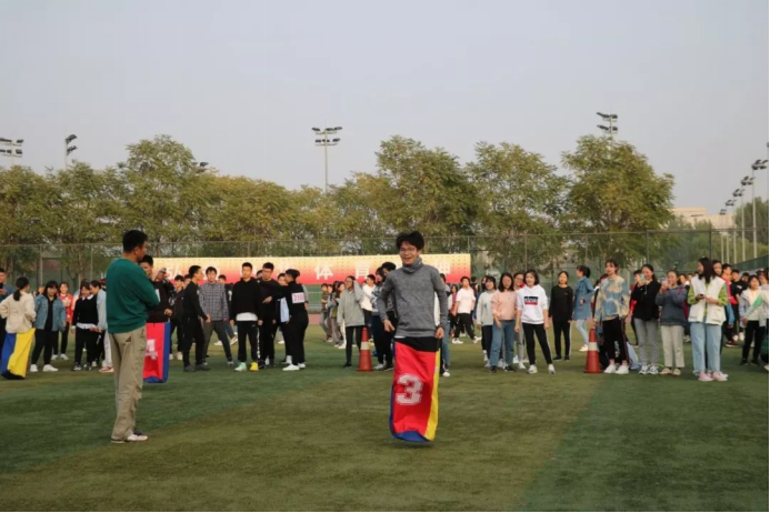 绑腿跑作为第一个开赛的团体项目,对同学保持高昂士气与信心至关重要。10月23日下午2:00,二十位同学斗志满满,组成政管学院代表队,来到绑腿跳检录处检录。同学们利用候场时间,练习出腿、口号,并及时调整战术,力争提高速度,节省时间。2:30,备受瞩目的绑腿跳比赛正式开始。整理好粘带后,但听哨声为令,二十位同学一齐向前冲出。比赛中,同学们默契配合,相互理解,及时调整,脚挨脚,心连心,为政管而战的他们是赛场上最耀眼的光。