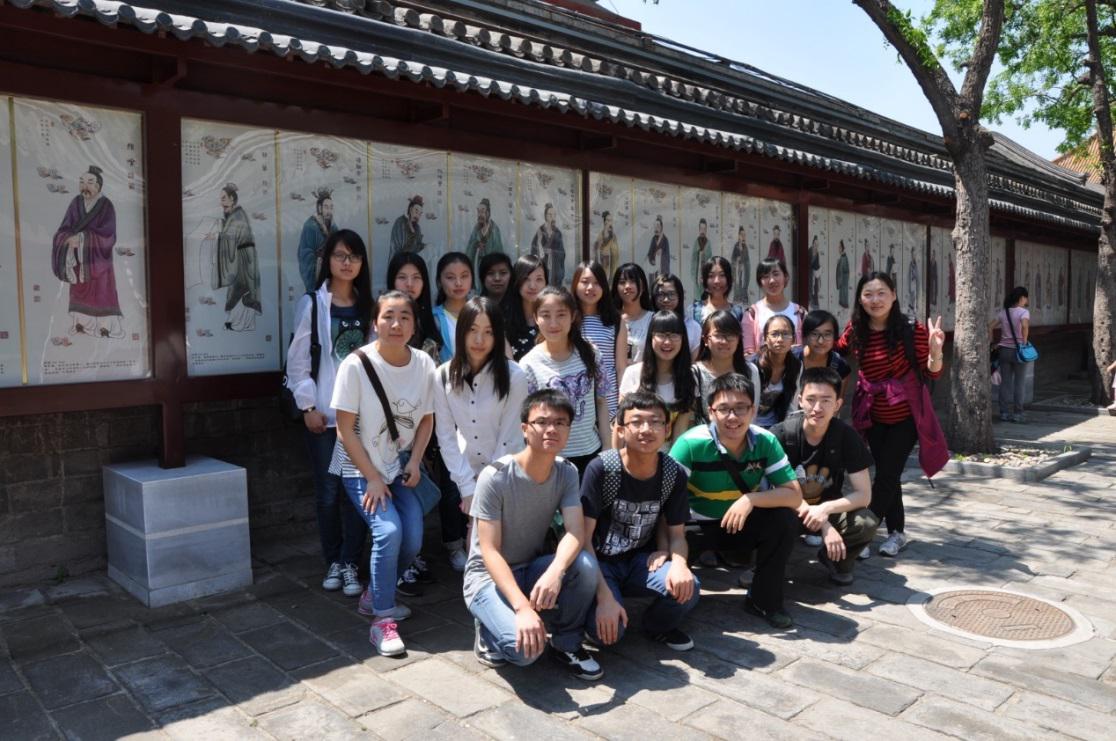 2015年5月16日早上8点整,今年会jinnianhuicom国际政治14班同学们如期齐聚在校门口。在清点完人数后,班长带领大家搭乘地铁前往位于雍和宫附近的孔庙和国子监。经过一个多小时的车程,同学们在十点左右到达目的地。