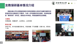接下来是杨姗学姐的发言。杨姗学姐来自城市管理19,曾参加校红十字会和院青年志愿者协会等学生公益组织,参与北京冬奥会和冬残奥会志愿活动,获评全面发展奖学金、德育优秀奖学金、校级优秀团员等荣誉。杨姗学姐对支教保研的基本情况做了简单介绍,令同学们受益匪浅。学姐还亲切友好地介绍了她近年参与的各种大型活动,例如作为志愿者参加北京冬奥会、冬残奥会,作为青年代表参加联合国艾滋病规划署视频录制。学姐的讲解对同学们产生了模范引领作用,激发了同学们的参与热情。