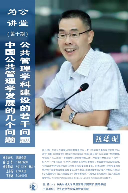 讲座主题:上半场:公共管理学科建设的若干问题;下半场:中国公共管理学发展的几个问题
