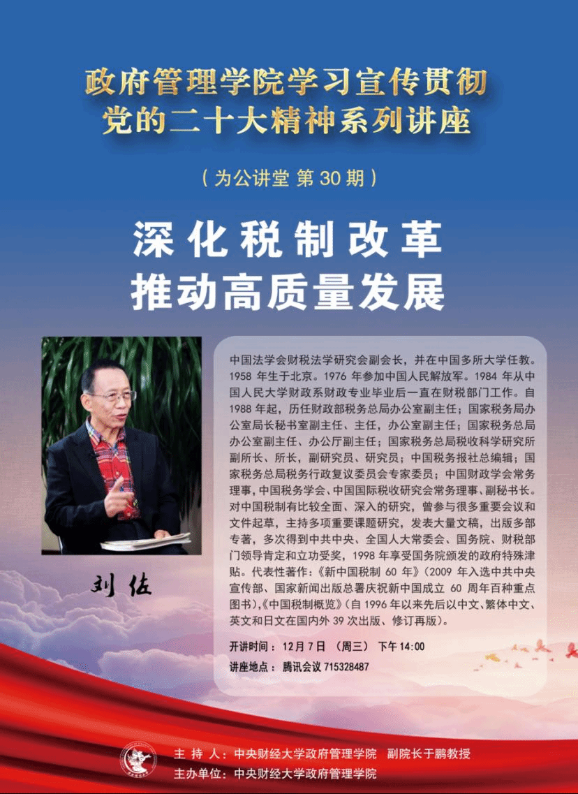 讲座主题:深化税制改革 推动高质量发展