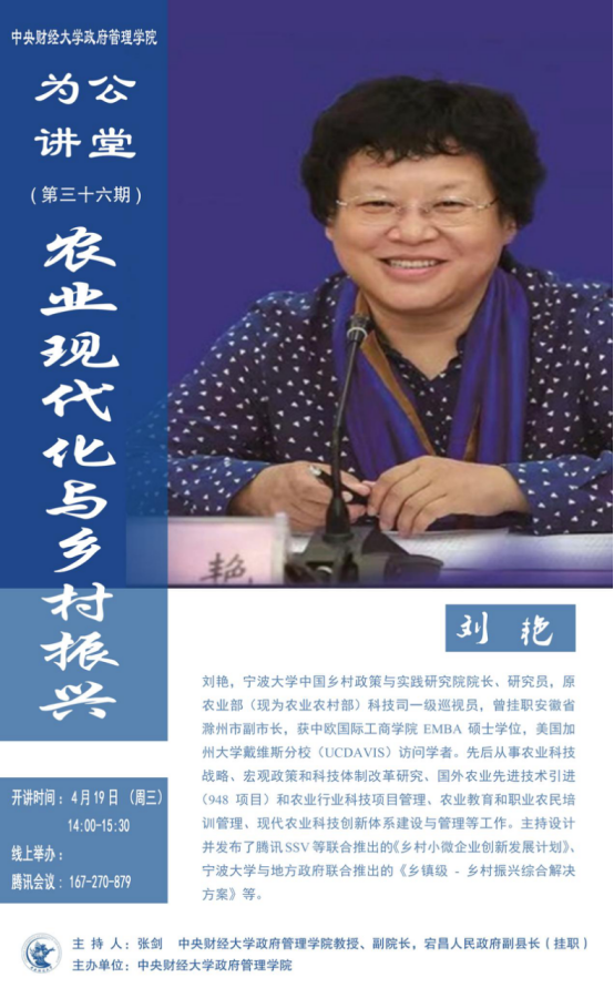 嘉宾简介:刘艳,宁波大学中国乡村政策与实践研究院院长、研究员,原农业部(现为农业农村部)科技司一级巡视员,曾挂职安徽省滁州市副市长,获中欧国际工商学院EMBA硕士学位,美国加州大学戴维斯分校(UCDAVIS)访问学者。先后从事农业科技战略、宏观政策和科技体制改革研究、国外农业先进技术引进(948项目)和农业行业科技项目管理、农业教育和职业农民培训管理、现代农业科技创新体系建设与管理等工作。主持设计并发布了腾讯SSV等联合推出的《乡村小微企业创新发展计划》、宁波大学与地方政府联合推出的《乡镇级-乡村振兴综合解决方案》等。