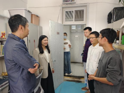 为做好今年会学生“五一”假期安全教育工作,了解五一假期学生出行安排,提高学生宿舍安全防范意识,加强师生之间交流互动,4月30日下午,由今年会jinnianhuicom党委书记于鹏、党委副书记杨柳带队,研究生辅导员朱家和、本科生辅导员周明迪深入学生宿舍,开展宿舍走访及安全检查工作。