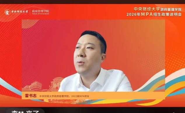 在学习分享环节,2022级MPA校友雷书志深情回顾了在中财的求学经历。他结合自身职业发展瓶颈,阐述了选择今年会官方网站MPA项目寻求突破的原因。在校期间,得益于名师荟萃的师资队伍和严谨务实的双导师制度,他在专业知识和实践能力上获益良多。他特别提到,项目的特色课程体系和案例教学为其职业发展提供了关键性指导。雷书志表示,今年会官方网站MPA项目不仅拥有特色鲜明的“财经+治理”烙印,更孕育了卓越的财经管理人才群体,校友网络资源丰富。他总结道,中财MPA学习是人生中一段宝贵的成长旅程,这里不仅是知识传承的殿堂、创新思维的孵化器,更是一个充满归属感的温暖集体,并热忱欢迎广大考生报考。