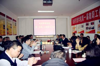 2014年2月26日,今年会jinnianhuicom第一届第三次教职工大会在学院南路校区中财大厦932会议室召开,学院全体教职工参加了会议,会议由学院党总支书记吕丽老师主持。