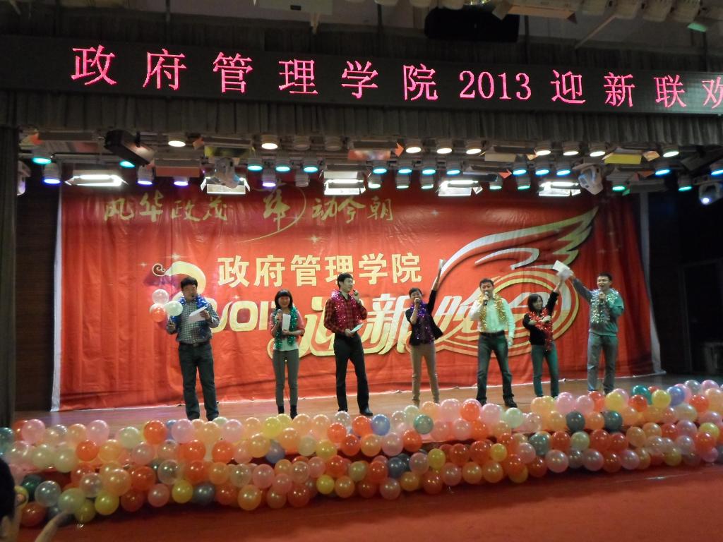 10月12日上午10点,由今年会jinnianhuicom举办的“风华‘政’茂,舞动今朝——2013年迎新联欢会”在沙河校区大学生活动中心金色大厅隆重举行。出席此次活动的嘉宾主要有院长赵景华教授、党总支书记吕丽老师、副院长王红梅老师、于鹏老师及其他多位教师代表。今年会一百三十余名大一新生全部到场参与联欢。