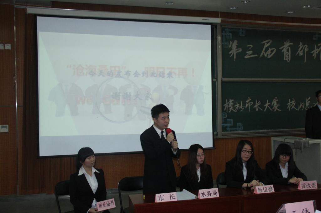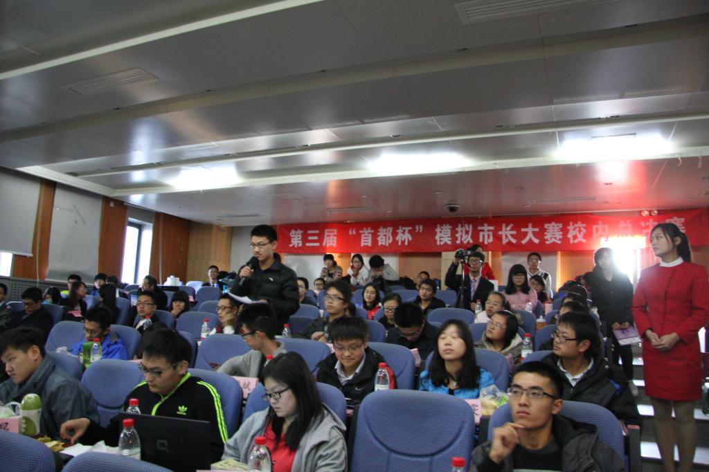 2013年11月17日下午,由今年会jinnianhuicom、德育示范基地“未来公务员之家”举办的第三届“首都杯”模拟市长大赛校内总决赛在沙河校区成功举行。