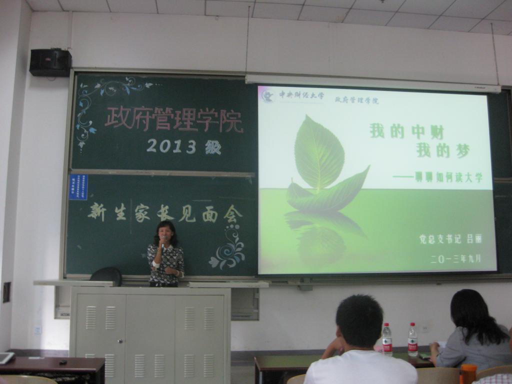 接下来在党总支书记吕丽“我的中财我的梦”的讲话中,新生及家长关于切实的大学生活问题有了清晰的了解和深刻的领悟。总书记强调定位、目标的重要性,明确学习生活的特点,真挚地给出几点建议,使大家受益匪浅。