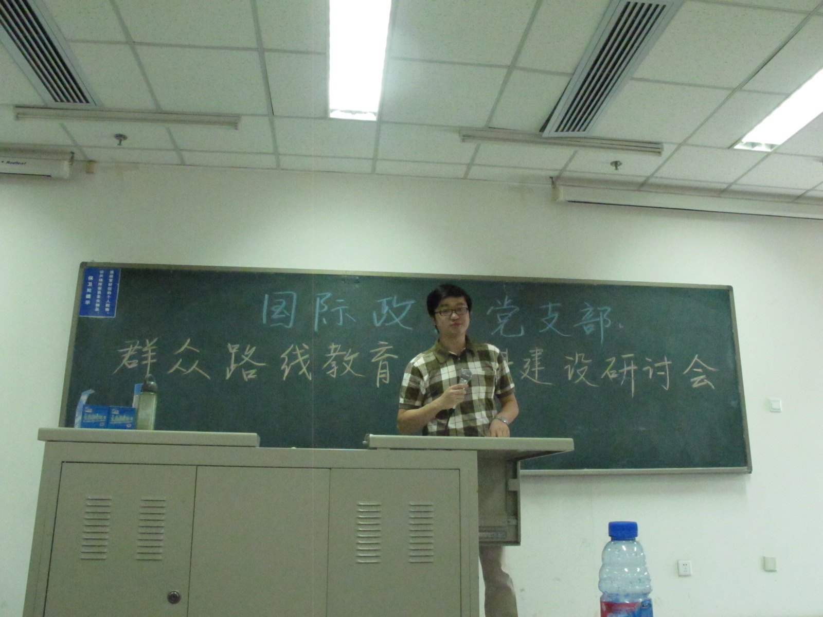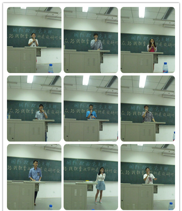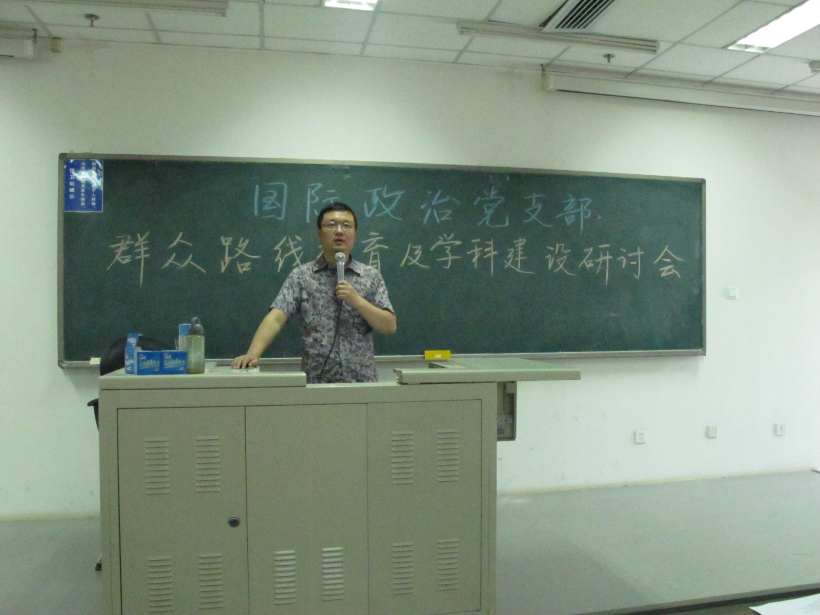 9月11日13点30分,今年会jinnianhuicom国际政治党支部在沙河校区6号学院楼106教室召开群众路线教育及学科建设研讨会。国际政治专业教师江涛、白云真、张占顺、耿喜梅、辛平、张鹏到场听取11、12级同学关于学院、学科建设方面的看法和建议。