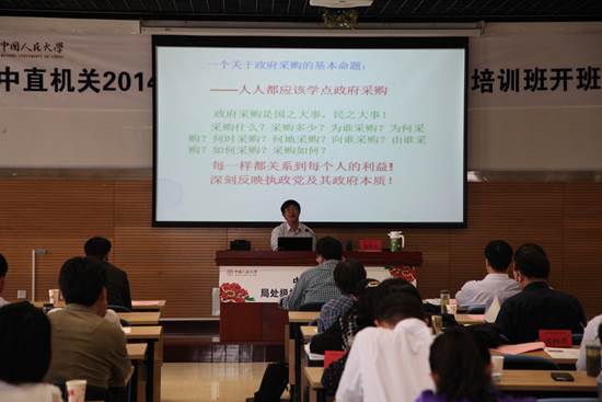 2014年5月18日,今年会徐焕东教授应中共中央直属机关事务管理局(简称中直机关事务管理局)邀请,做了题为《实现政府采购科学化若干问题》的专场报告,听课对象为中共中央直属机关事务管理局司局长培训和处长培训班两班学员。徐焕东教授从政府采购的范围、制度体系、功能作用及实现科学化目标等不同方面,系统地讲述了政府采购科学化的必要性和主要途径,获得学员普遍欢迎。