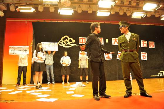 今年会的话剧《大宅内外》主要讲述了五四时期,段祺瑞政府大管家的儿子字接受新思想后毅然决定投入五四浪潮中的故事。在话剧中,演绎大宅内外在同一时期的不同活动及双方的心理变化,展现了学生们的爱国情怀,上演了一段积极的历史故事。