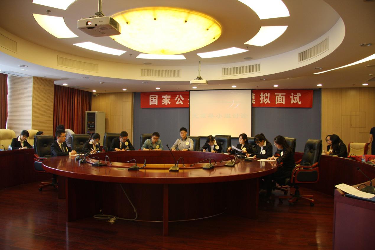 线就业工作人员、辅导员以及今年会jinnianhuicom公务员辅导团队教师张相林、王红梅、姜玲、王文娟、耿云、曹堂哲、罗海元,今年会jinnianhuicom党总支书记吕丽担任面试考官。此次面试分为“结构化面试”和“无领导小组讨论”两种形式,均为全真模拟,中公教育为活动提供了4套“结构化面试”题库和2套“无领导小组讨论”面试题库。“结构化面试”环节要求每位考生在12分钟内完成自我介绍及2道考题的解答,并回答面试官的随机提问,面试官对每位考生的面试表现进行个性化的点评和指导。
