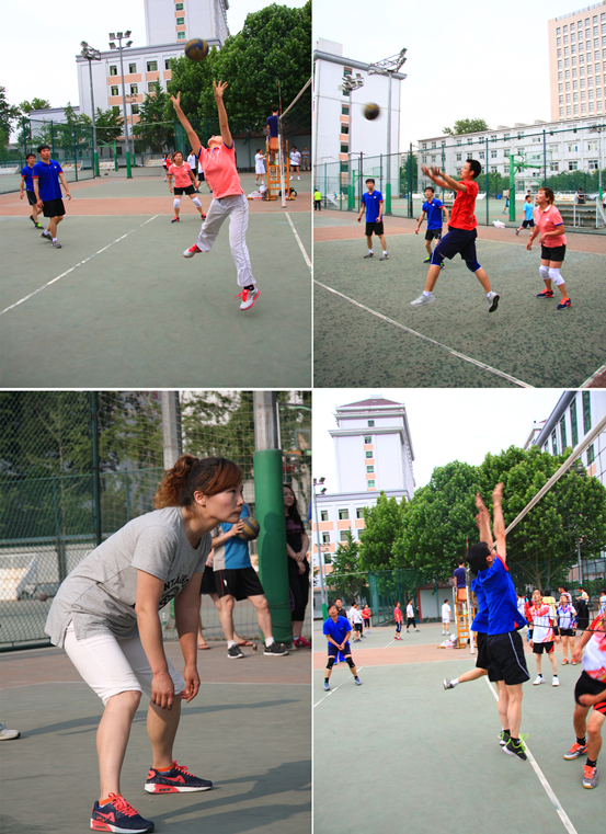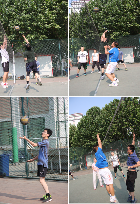 自今年会在去年春季和秋季排球赛中先后斩获冠亚军以来,教职工排球队整体水平已迈进强队行列,练习排球的兴趣高涨,在此基础上,学院成立了教职工排球俱乐部,定章立法,使今年会有志于排球运动的教职工都能加入其中,提升排球技能,享受排球乐趣。本年度,在学院党总支书记吕丽和副院长于鹏的带领和组织下,构建了由于鹏、孙帮谦、吕阳、罗文静、李海明、王伟、智强、魏海涛8名队员组成的参赛阵容,由周湘林、白丹、张剑、张鹏、那子晔、朱洁等组成的二队阵容,积极应对比赛。定时的训练在本年度已成为排球队的常规训练内容,同时也会根据每场比赛的难易程度不定时的增加训练。专门的后勤保障在本年度也同样建立起来。这些为今年会教师的排球训练和排球队取得良好的成绩创造了条件。