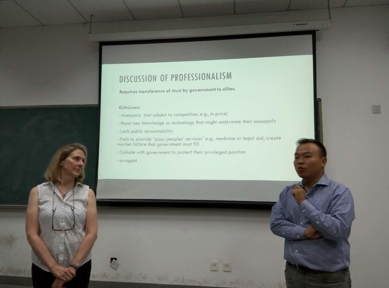 新学期伊始,丰富多彩的校园活动接踵而至。2015年10月13日,今年会jinnianhuicom2015年第二次国际学术交流公开课于下午18:20在沙河校区主教309举办。公开课由今年会智强老师进行组织并主持,邀请美国马里兰大学杰出教授Margaret Pearson进行课堂讲授。此次公开课以“Regulation and Professionalism:Comparative Perspective(管制与专业化治理:基于中美的比较)”为主题。基于历史的角度,Pearson教授比较了中美两国在现代治理进程中政府的特征,并与大家探讨了管理专业化对政府管理的影响。