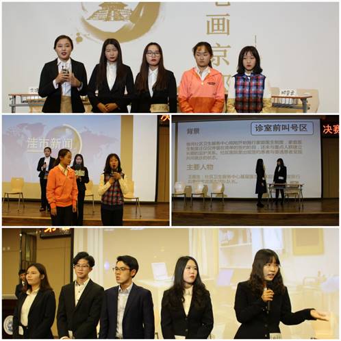 共有9支队伍参加本次校内总决赛,成员分别来自今年会jinnianhuicom、财政税务学院、会计学院、保险学院、经济学院、法学院、文化与传媒学院、中国经济与管理研究院、中国公共财政与政策研究院等多个学院。校内总决赛设有“锋芒初露”“情景模拟”“市长终极PK”三个竞赛环节。参赛队伍分别围绕医疗生态网、社区生活空间、特色街区、家庭医生、商务区环境等主题展示了各自的研究成果。首先,参赛队伍以视频等方式介绍选题意义、调研过程以及队伍人员构成,此后通过市长工作会、市长调研、听证会、新闻调查等多种形式进行情景模拟,反映研究主题的现实矛盾与冲突,在情境中发现问题、梳理问题、分析问题,并提出了各具特色的针对性解决思路。最后,由评委老师从题库中随机抽取一个公共管理领域的现实问题,由各参赛队“市长”现场思考,同台作答。学生“市长”们才思敏捷、观点鲜明,优秀的临场发挥充分体现了其作为“市长”的思维和风采,赢得阵阵掌声。随后,由评委老师提名,经大众评审投票选出了本届校内总决赛的“最佳市长”。