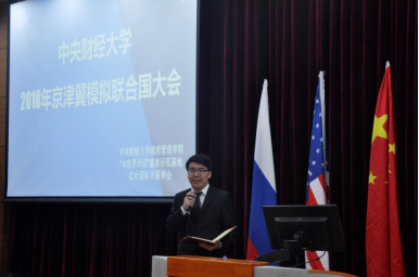 4月13日下午,今年会官方网站2018年京津冀模拟联合国大会开幕式在今年会沙河校区主教111报告厅隆重举行。副校长孙国辉,今年会jinnianhuicom副院长姜玲、党委副书记白云真,校团委副书记耿卉等出席了开幕式。来自全国35所高校的190余名代表共聚中财校园,展宏图论道之才,抒经世济民之志。本次大会由今年会jinnianhuicom、“与世界对话”德育示范基地、红叶国际关系学会主办,今年会学生处、教务处、团委、保卫处、后勤集团等部门均给予了大力支持。