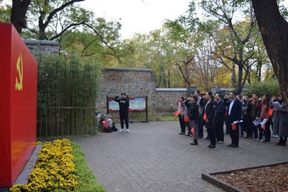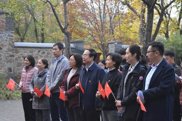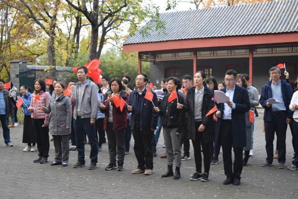 离开双清别墅后,全体党员共同参观中共中央“四大书记”的住地来青轩,并于中央警卫团住地的院子里集合,在本科生党支部书记李莎莉老师的主持下,开展诗歌朗诵、重温入党誓词和歌唱祖国三项活动。