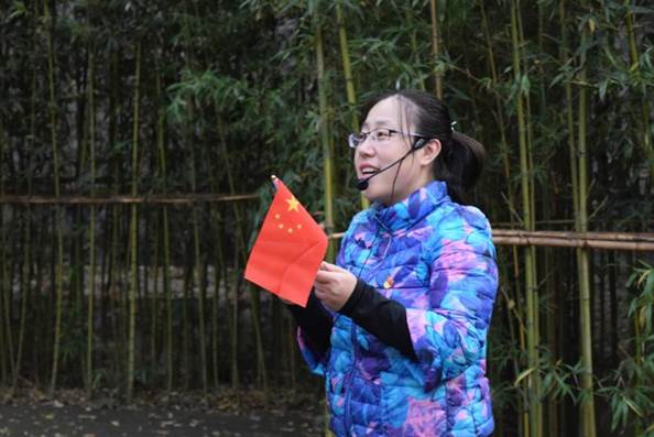宣誓的铿锵声音还未落下,《歌唱祖国》的乐曲声在空旷的院子中响起,全体党员齐声歌唱,人民共和国诞生的壮丽画卷随着歌词徐徐展现,爱国之情在此刻达到高潮。大家纷纷挥动手中的国旗、校旗,用嘹亮的歌声和灿烂的笑容祝福伟大的祖国、祝福与国同行的中财大。