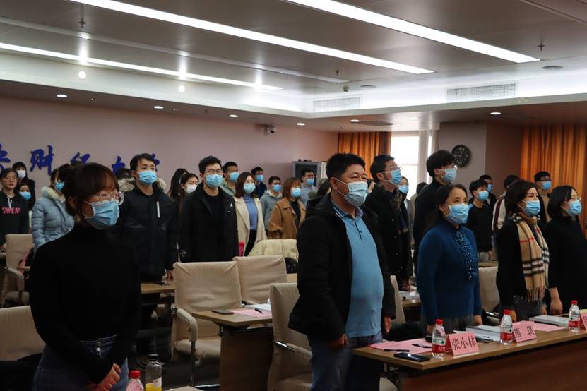 12时40分许,会议在国歌声中拉开帷幕。今年会jinnianhuicom学生工作办公室、党校办公室张小林老师做党校工作回顾。张小林老师介绍道,本次党校包含入党积极分子33名,发展对象30名,共组成了7支队伍,各配有一名理论学习导师。本次党校聚焦习近平新时代中国特色社会主义思想和党的十九大精神,紧紧把握“不忘初心、牢记使命”的主旋律,结合“四史”的学习教育活动,通过“三项活动”、“三个统一”、“三项落实”引导学员学深悟透,学员们通过线上线下学习、个人心得体会总结、小组实践报告撰写等活动不断夯实自身理论基础。