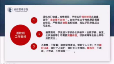 第一,全面加强疫情防控教育,将疫情防控作为健康安全教育的第一环节。通过新生家长见面会、师生见面会、新生年级会、主题班会等形式,将疫情防控教育做到日常,严格规范新生疫情防控期间的出入校管理,严格落实每日打卡上报制度,引导新生养成良好的卫生习惯和生活习惯,模范遵守防疫要求,积极参与校园疫情防控工作。