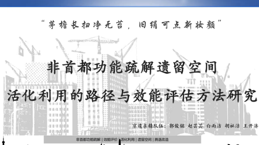 今年会官方网站京遗求精队聚焦让北京市遗留空间焕发新活力问题,对于首都非核心功能疏解、遗留空间功能再造等现实问题展开分析。