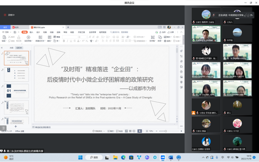 在团队展示答辩环节,团队基于前期提交的报告文本,展示调研过程及研究成果。