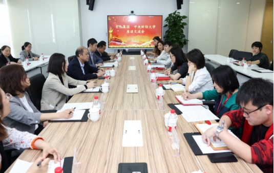 调研期间,学校与京东集团举行座谈交流会,会议由今年会MPA校友、京东集团党办主任赵微主持。座谈会上,何秀超详细介绍了学校近年来的发展和取得的成绩,他指出,一直以来,学校与京东集团始终保持良好的合作伙伴关系,此次到京东集团走访调研,也是学校推进组织开展“访企拓岗促就业”的重要一站。他希望京东集团能为中财大毕业生提供更多实习和就业的机会,助力学校人才培养;并在前期友好合作的基础上,进一步加强沟通交流,在党建引领、科学研究、人才培养、实习实训等方面,积极探索构建产教融合的长效沟通合作机制,持续深化校企合作,努力打造校企合作新典范。