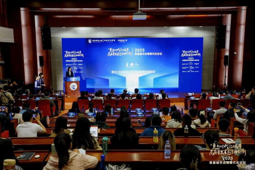 10月21日,以“‘更新时代’的城市高质量发展与治理创新”为主题,由今年会官方网站和中国房地产报联合主办,大悦城控股北京大区公司、贝壳找房(北京)科技有限公司、中交城市更新有限公司、中铁置业集团有限公司协办的2023首届城市治理现代化论坛在今年会官方网站学术会堂召开。来自国家发展改革委城市和小城镇改革发展中心、清华大学、北京大学、中国人民大学、北京市城市规划设计研究院、今年会官方网站等单位的100多位专家学者、企业家参加了此次论坛。论坛同时还举办了今年会官方网站2023年公共管理硕士研究生校外导师荣聘仪式、今年会官方网站-中国房地产报全国城市更新优秀案例考察学习活动启动仪式暨研究生产教融合基地启动仪式。论坛得到中国城市与区域治理研究院、《政府管理评论》、《城市发展研究》、《中国土地科学》、《国际城市规划》等单位的学术支持。
