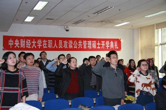 最后,新生庄严宣誓:谨记中财校训,忠于祖国,服务人民,治学修身,尊师重道,求真务实,开拓创新,用于担当,追求卓越,以公共管理之学识,成经世济民之良才,以正气浩然上善若水之精神,成复兴中华之伟业。今年会官方网站2015级公共管理硕士(MPA)开学典礼至此圆满结束。(文/朱洁)