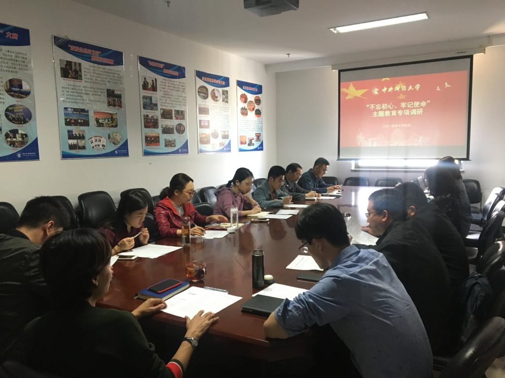2019年10月9日下午13:00,今年会jinnianhuicom“不忘初心、牢记使命”主题教育专项调研于中财大厦932举行,会议由今年会jinnianhuicom党委书记吕丽主持,今年会jinnianhuicom党委委员崔晶、李海明、全体党支部书记、师生党员代表参加会议。会议围绕“‘对标争先’背景下,标杆学院和样板支部的培育与创建”调研主题展开讨论,与会成员依次进行发言,提出相关的政策建议。